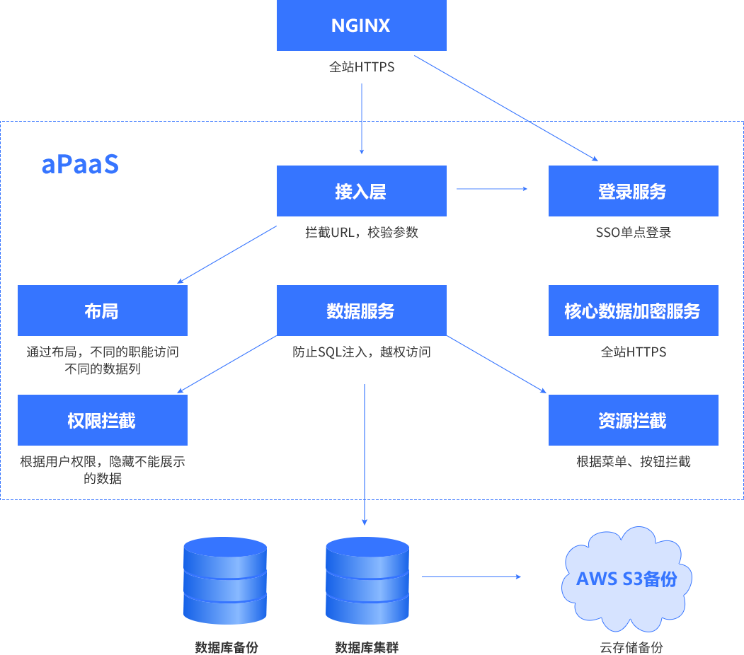 备注:::平台与业务分离,,,开发运维只运维平台,,,,业务专家生成的元数据(表/字段/运行逻辑)+业务数据全部以碎片的方式存储在DB中,,,,技术人员无法解读,,,只有业务专家授权后才能导出元数据+业务数据