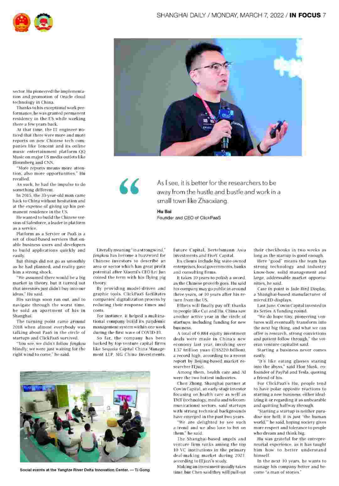 《上海日报》专访VIVO钱包创始人、、、、CEO胡柏,,探究其创业背后的故事!!!