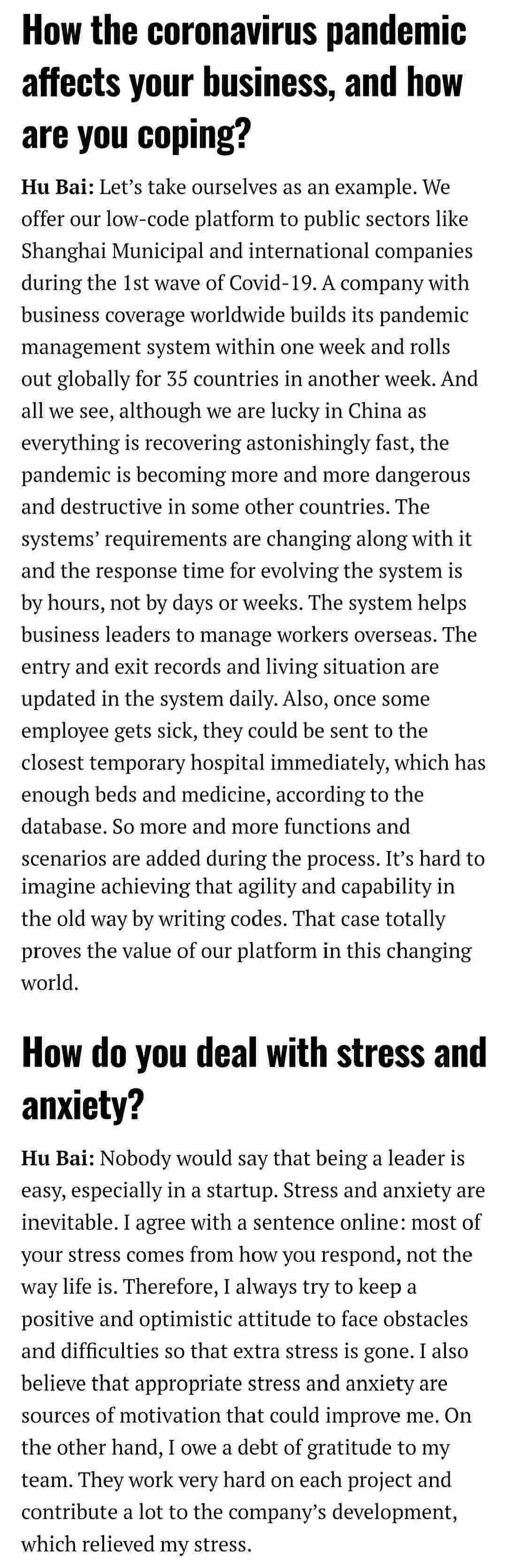 2021年年初,,,,爱湃斯科技CEO胡柏受邀接受法媒Startup.info的专访,,,,与Startup info的读者分享了自己的创业经历、、、以及低代码平台VIVO钱包的创新之处。。。