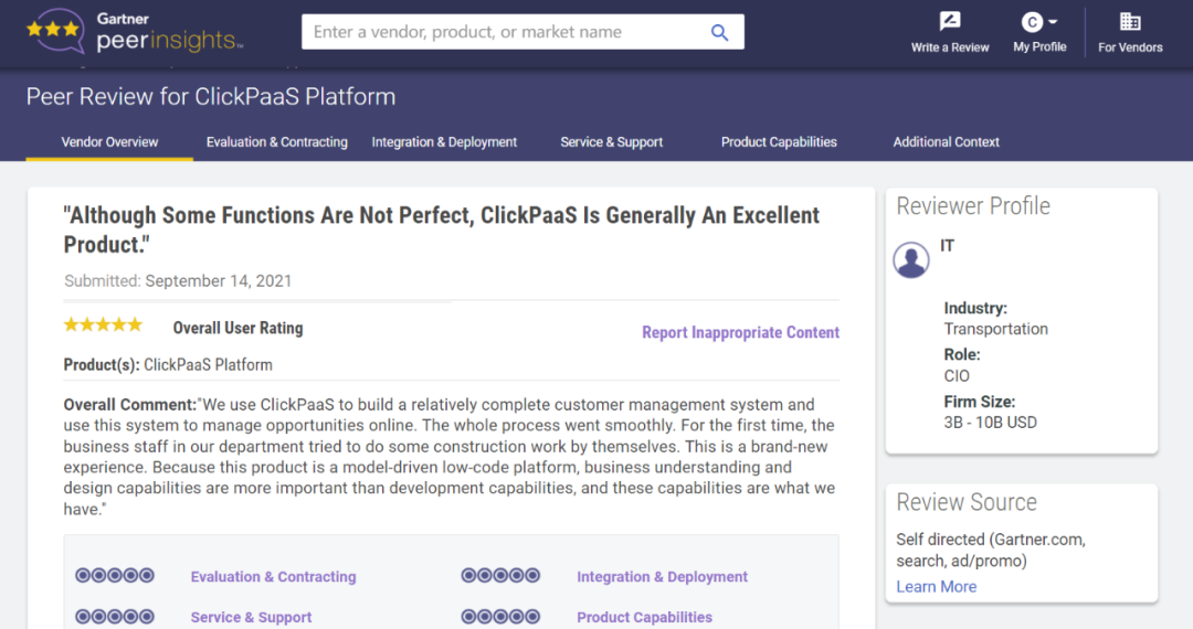 Tips::【Peer Insights】——用户对企业IT产品和服务发布真实评价的平台。。。目前已有355个市场,,,255,000条经过验证的评价。。每一条评价Gartner会针对参评企业营收规模及参评人员信息做验证、、、评价内容做多维核实。。。